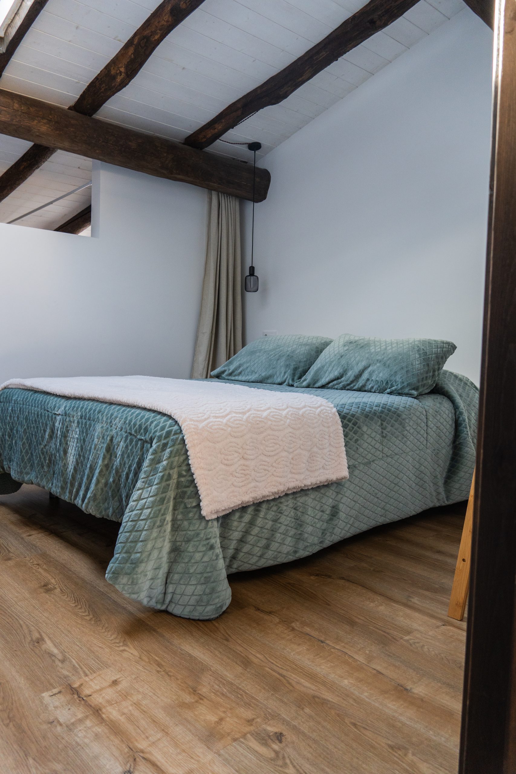 Ambientes cálidos y luminosos que combinan tradición y modernidad. En la planta baja, cocina totalmente equipada integrada en el salón-comedor, junto a una acogedora zona de lectura con sofá cama. En la planta superior, dos habitaciones dobles con baño privado. Climatización por aerotermia y cada detalle pensado para garantizar una estancia confortable.